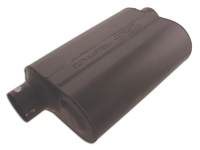 Increased Efficiency and Power. Increase the performance of your Chevy Silverado by installing the Flowmaster Super 40 Series Offset/Same Side Out Oval Muffler. It comes in a smooth satin black finish with the same side offset muffler for a clean and aggressive look. The offset oval muffler features the delta flow technology without any internal packing for increased power without any chances of leak or degradation in performance.