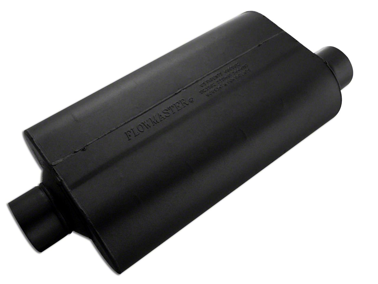 High-End Performance. 3" Flowmaster Super 50 Series Center/Offset Oval Muffler not only sounds impressive, it also offers performance gains to back up its roar. Maximised exhaust flow enhances your truck's horsepower and torque as well as its throttle response so that you get the drive you always dreamed of.