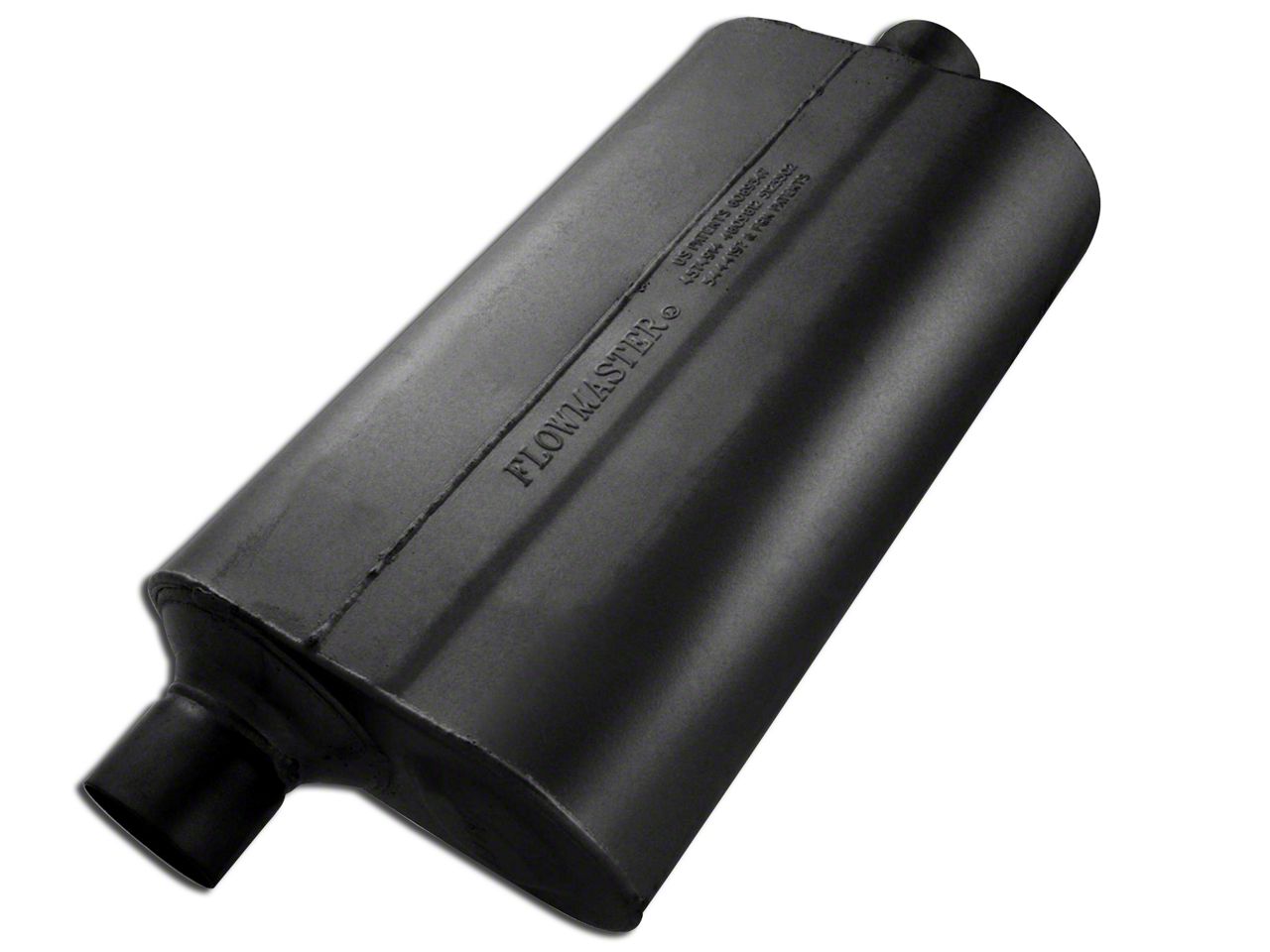 High-End Performance.The 2.5” Flowmaster Super 50 Series Offset/Center Oval Muffler not only sounds impressive, it also offers performance gains to back up its roar. Maximised exhaust flow enhances your truck's horsepower and torque as well as its throttle response so that you get the drive you always dreamed of.