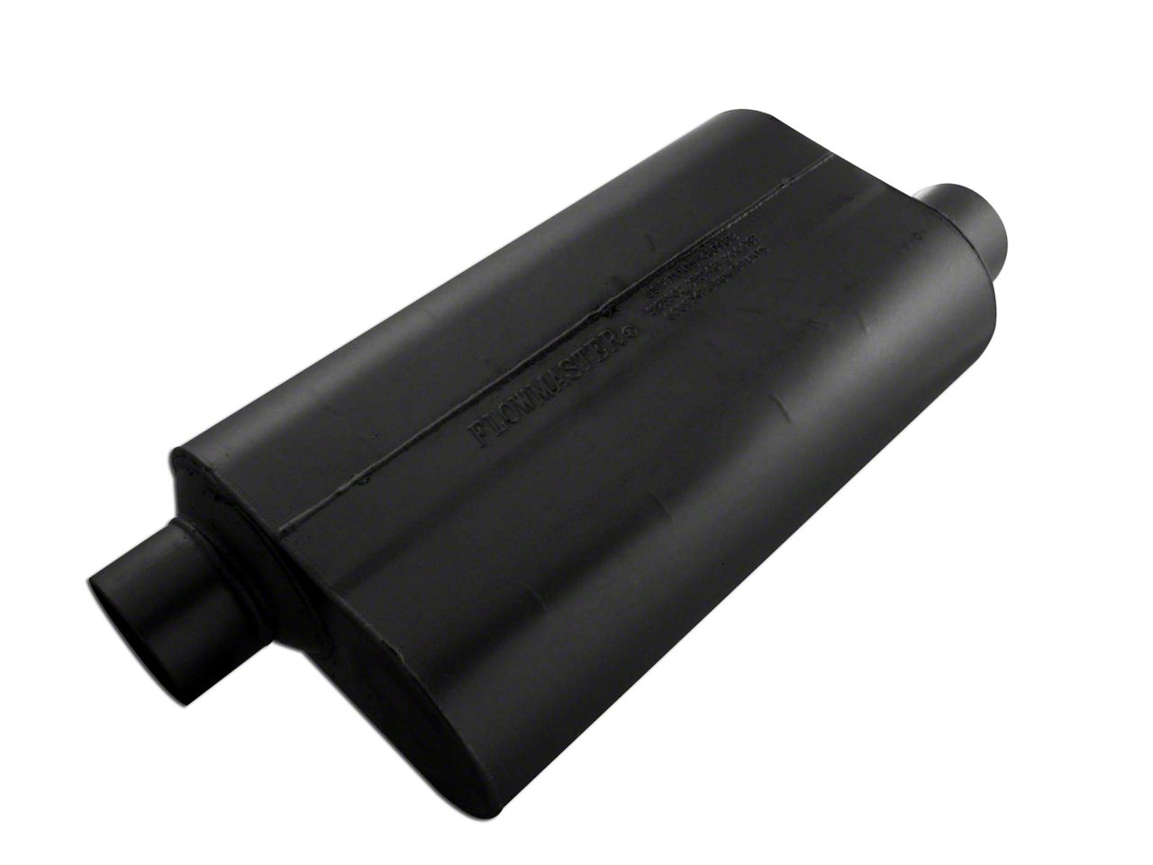 Mild Exhaust Note. If you’re looking for an aftermarket muffler that gives a slightly louder exhaust tone without overdoing it, the Flowmaster Super 50 Series Offset/Offset Oval Muffler – 3.0 in. is your product. This Super 50 Series Muffler adds a mild, yet rich exhaust tone that is close to the stock, all while keeping minimal interior resonance. This muffler comes in a sleek black finish to match your blacked out exhaust.
