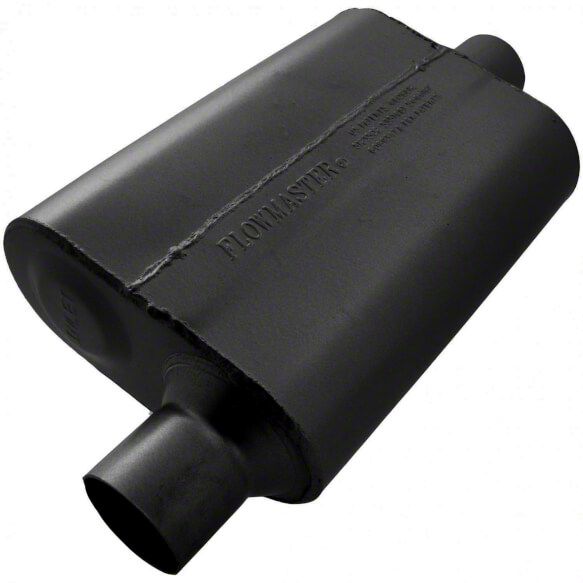 Bold Aggressive Sound. The Flowmaster 40 Series Delta Flow Offset/Center Oval Muffler; 2.50-Inch Inlet/2.50-Inch Outlet is designed to produce a strong, deep exhaust tone that is perfect for those who want their vehicle to stand out from the crowd.