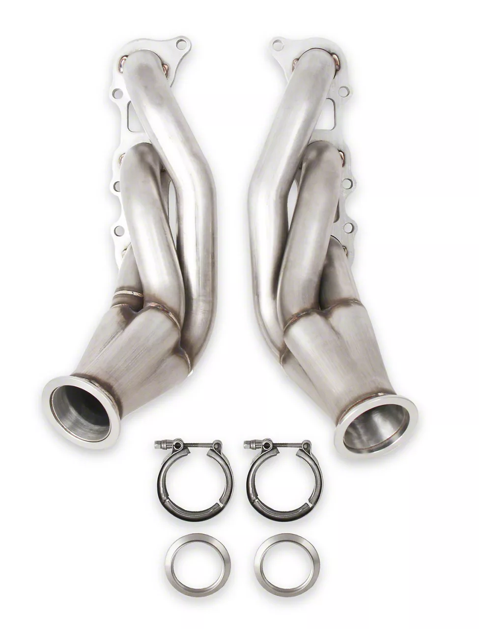 High-Performance Turbo Headers. The Flowtech 1-5/8-Inch Coyote Turbo Headers; 304 Stainless; Natural Finish are engineered to maximize exhaust flow and turbocharger efficiency on Ford Coyote 5.0L engines. Designed with forward-facing collectors, these headers are ideal for custom turbo setups and performance builds. They deliver improved velocity, durability, and power potential for serious enthusiasts.