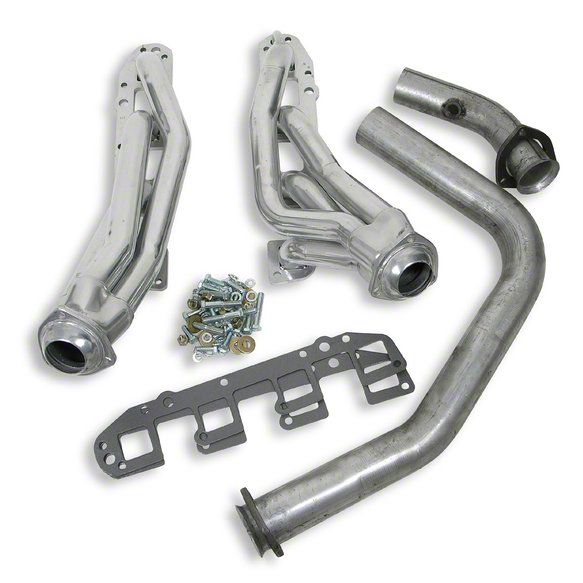 Description. FLOWTECHs emissions-friendly headers are just the ticket for those who want the best of both worlds - top performance and a clean machine. All Shorty Smog Headers bolt on quickly and easily to the factory exhaust system, retaining all stock emissions equipment, and offering maximum horsepower gains plus increased efficiency! Kit comes with 2.25 in. short down pipe and a 2.5 in. long down pipe to connect to factory exhaust system. Downpipes are not coated.