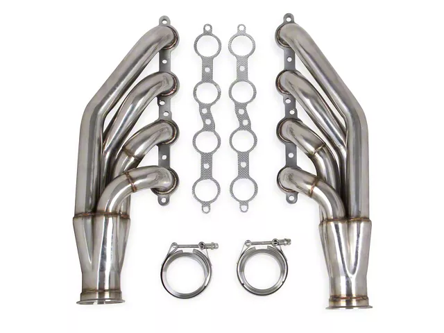 Construction and Appearance. Built from heavy-duty 16-gauge 304 stainless steel tubing, these headers deliver strength and durability under extreme conditions. CNC mandrel-bent tubes ensure smooth, consistent flow, while the 7/16-inch thick header flange provides a reliable, leak-free seal. They come with premium aluminum header gaskets, V-band flanges, and clamps for a complete installation. Available finishes include natural, black painted, ceramic coated, and polished for added protection and style.