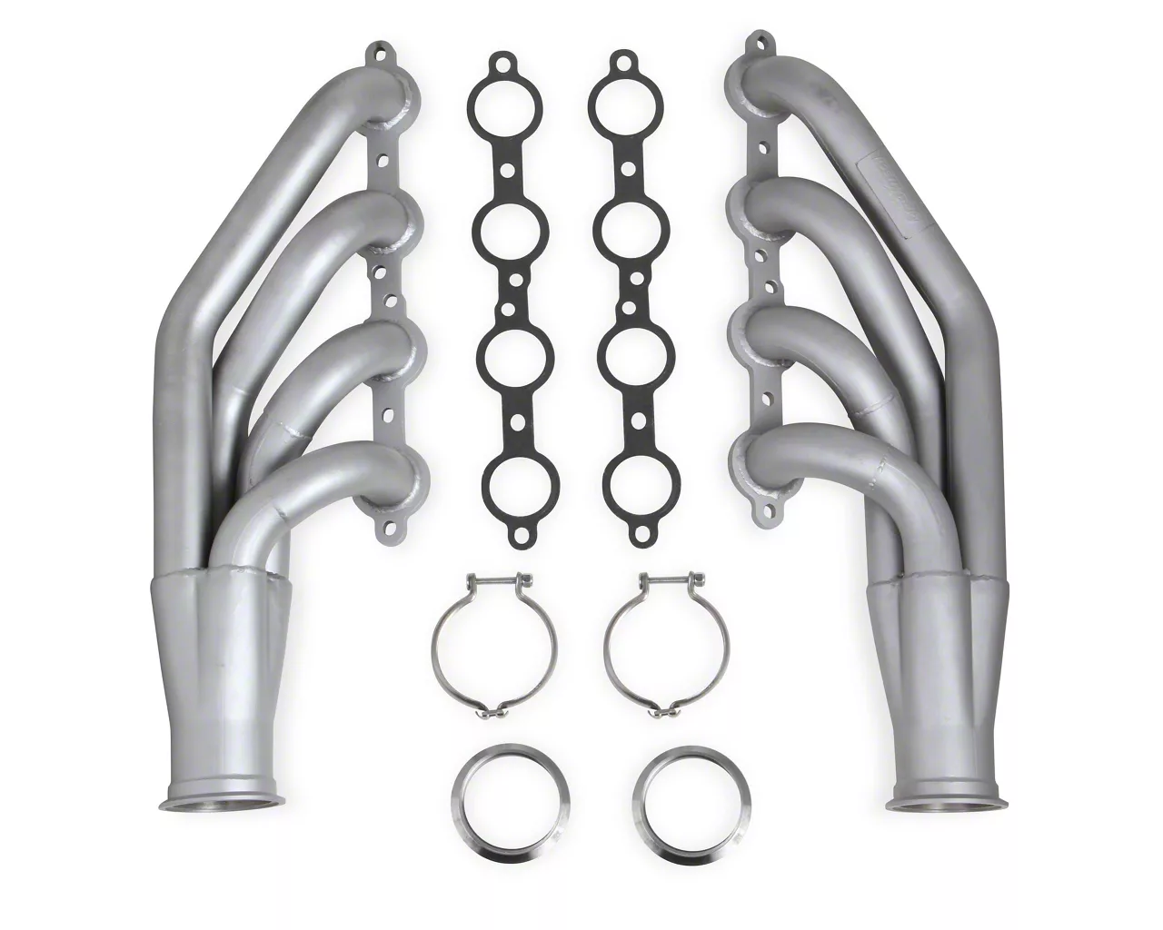 Construction and Appearance. Crafted from CNC mandrel-bent 1-3/4-inch 409 stainless steel tubing, these headers ensure precision and consistency in exhaust flow. Each header is finished in a matte metal ceramic coating, providing both a sleek appearance and superior heat resistance to protect against corrosion and thermal fatigue. The 3-inch collectors promote optimal exhaust velocity and turbo efficiency, while the included gaskets, V-band flanges, and clamps allow a secure, leak-free connection in high-pressure environments.