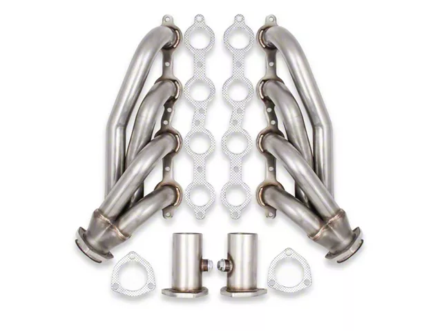 Construction and Appearance. Built from 1-5/8-inch 304 stainless steel tubing, these headers are designed for strength and efficient exhaust flow. They include 2-1/2-inch collectors paired with 3/8-inch-thick header flanges to ensure a secure seal under demanding conditions. The raw metal finish highlights their rugged character, while 2-1/2-inch reducers with oxygen sensor bungs make integration with your system straightforward.