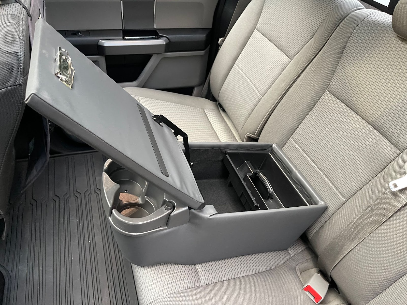 In the Ford F-150, bench seats are more commonly found in the work truck trim levels. Bench seat consoles usually fold down into the middle seat to create a makeshift console and armrest. Typically, these types of seating layouts will not have a separate console mounted to the floor, so replacement options are fairly limited.