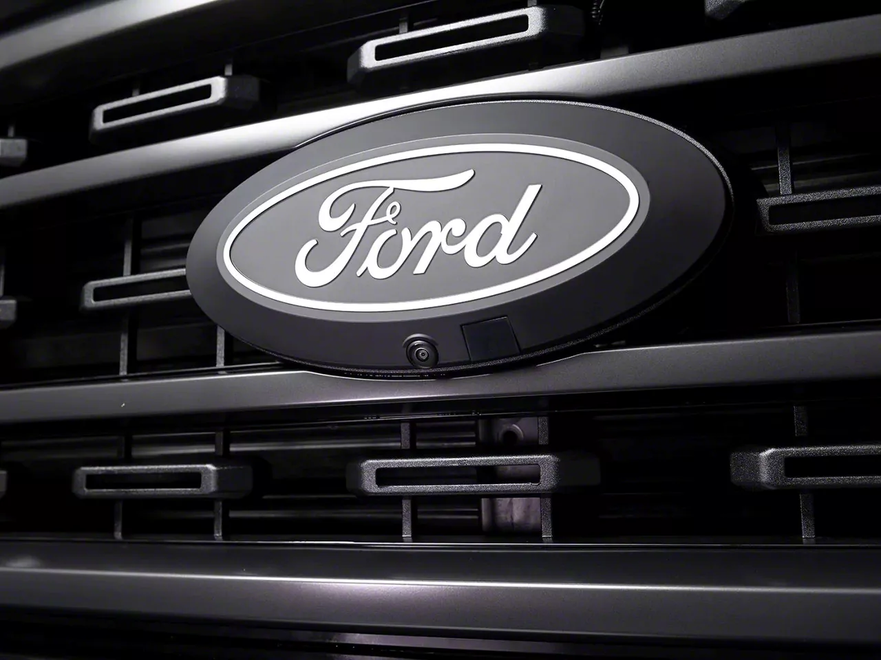 Jazzed-Up Front Exterior. Add a custom touch in a form of an illuminated badge with the Ford LED Illuminated Ford Grille Emblem for the Forward Facing Camera. Featuring a bright LED strip, this emblem glows, creating an impressive accent on your F-150. It comes with a mounting hole for your front-facing camera. The location is ideal, eliminating blindsides, especially for a lifted setup.