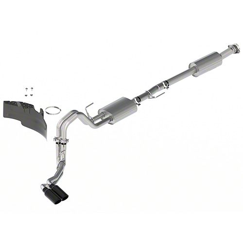 Rolled Edges. With its 2 rolled edges with slant-cut tips and a cat-back design, it not only enhances your F-150's appearance but also boosts its exhaust efficiency. The single-in/dual-out exhaust type ensures optimal performance.