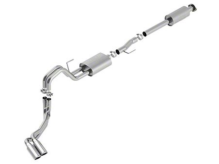 Powerful and Aggressive Sound. Your truck will aggressively growl with the new Ford Performance by Borla Sport Cat-Back Dual Side Exit Exhaust with Chrome Tips. The exhaust will increase the sound of the truck with a free-flowing design and wide pipes.