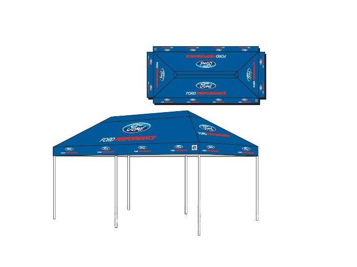 Convenient Shelter for Outdoor Events. Being outdoors is great especially if you have shelter from the sun or rain. With the Ford Performance E-Z Up Tent, you can bring your own shelter to any outdoor event. It features an improved Auto Peak® Auto-Slider® that lets you easily set up almost anywhere. The top is bolted on for added security in windy weather. This shelter is perfect for car shows, cookouts, tailgate parties, and other outdoor events.
