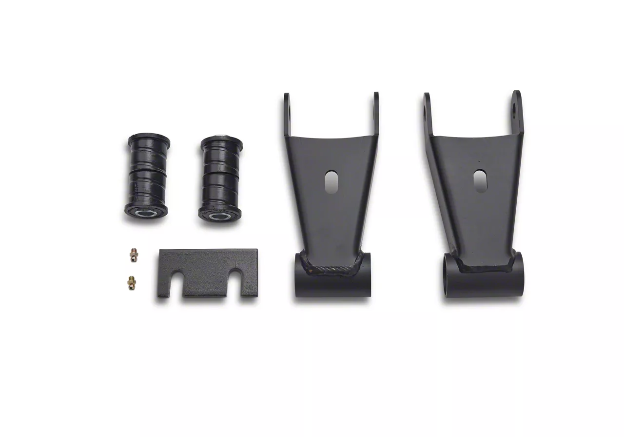Kit includes laser-cut, steel lowering shackles with urethane bushings