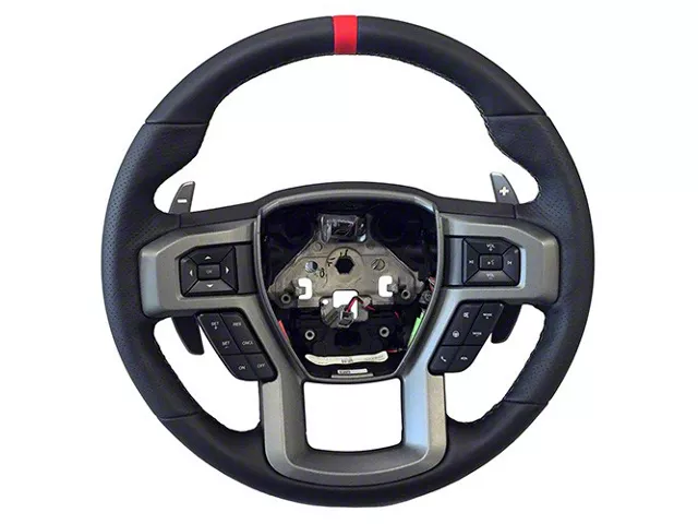 Application. The Ford Performance Steering Wheel Kit; Red Sightline fits 2015-2018 F-150 Models. Please note - Paddle shifters will not function when installed onto F-150s that were not originally equipped with paddle shifters from the factory.
