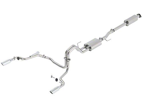 Aggression Overload. Step up the aggression of your truck and give it a low growling note that you hear every time you go down the road with this Ford Performance by Borla Touring cat-back exhaust system. It's designed to maximize the deep resonance of your exhaust system and do away with the higher notes.