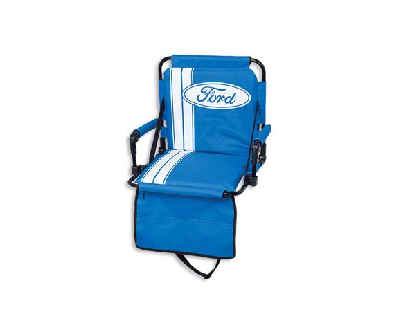 Designed for Comfort. If you're a racing or sporting enthusiast and enjoy the Ford brand, you'll be sure to love this Ford Stadium Seat. It's the perfect item to take with you when you're outdoors watching an event or just socializing with friends. This seat was designed for superior user comfort with the padded seat bottom, back, and arms. It features two storage pockets for your convenience. You'll love how simple it is to transport this seat with the convenient carry strap.
