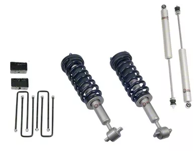 Lifted Performance and Ride Quality. The Freedom Offroad 3-Inch Front Lift Struts with 2-Inch Rear Lift Blocks kit offers a complete suspension lift solution to enhance your F-150's ground clearance and off-road capability. This system includes fully loaded front struts and upgraded rear shocks that improve handling, reduce bottom-out, and preserve the comfort of your factory ride. Perfect for drivers looking to accommodate larger tires while upgrading both stance and performance.