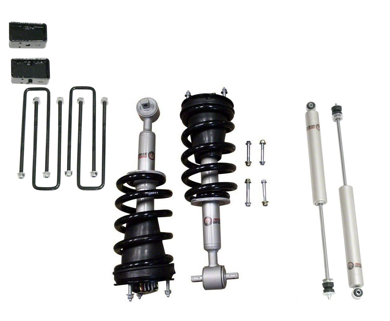 Lift and Performance. The Freedom Offroad 3-Inch Front Lift Struts with Rear Lift Blocks and Shocks provide a substantial lift for your vehicle, enhancing its ground clearance and giving it a more aggressive look. These components also contribute to a smoother ride and a superior off-road experience, making them essential for off-road enthusiasts.