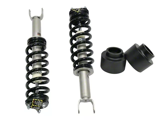 Construction and Features. These fully assembled lift struts come in a glossy black and polished chrome finish for a sleek, rugged look. The kit includes new struts, springs, and top mounts for the front, while rear lift spacers ensure proper elevation. The components are designed to withstand tough conditions, providing increased durability and stability during both on- and off-road driving.