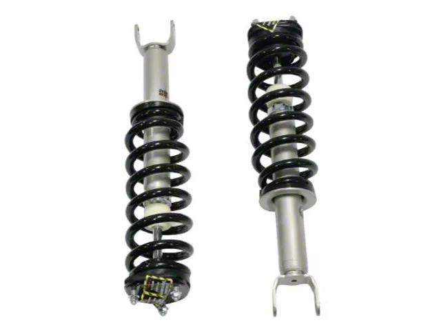 Construction and Appearance. Each strut is equipped with glossy black finish springs and polished chrome struts for strength and a premium look. Built with a 40mm chrome-hardened piston rod, hardened rubber bushings, and a high-pressure nitrogen charge, they deliver consistent damping performance and long-term durability. Their robust build ensures reliable suspension function while maintaining ride comfort.