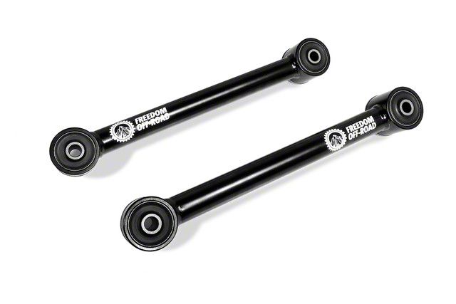 Hardline Cast Aluminum. The Freedom Offroad Rear Upper Control Arms for Stock Height feature hardline cast aluminum steel that has been thoroughly processed and anodized with Zinc and rust-resistant black powder coating that further fortifies its sturdy structure and gives it extra strength to handle your vehicle's full weight.