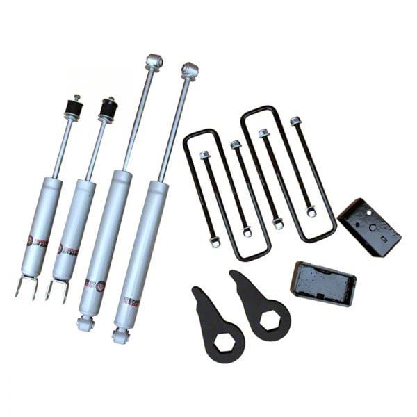 • Carbon steel 3" rear lift blocks with extended U-bolts (FO-U30130+G401)