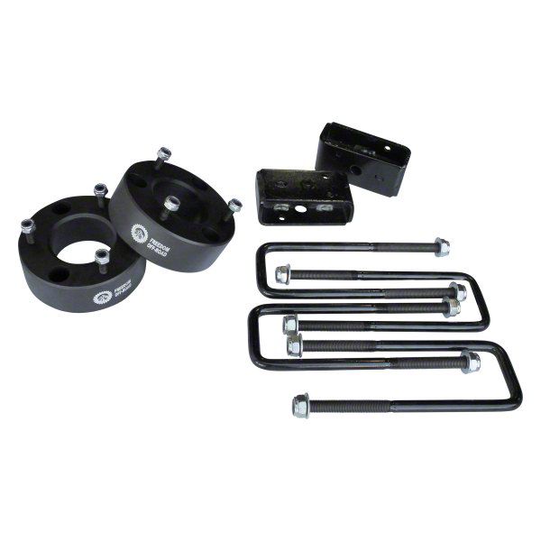 Comfortable Travel. Don't let rough terrains hold you back and conquer the outdoors with the Freedom Offroad 3-Inch Front Strut Spacers with 2-Inch Rear Lift Blocks. Made from heavy-grade billet aluminum and designed with efficiency, these spacers help eliminate any swaying or wobbling caused by ineffective strut installation, improving your vehicle's overall stability and granting you the power to travel any trail with comfort.