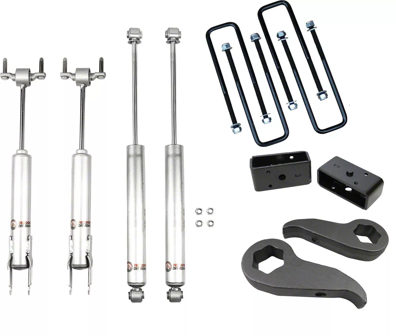 Durable Leveling Kit for Enhanced Lift. The Freedom Offroad Leveling Kit is designed to provide balanced lift for the 2020-2026 GMC Sierra 2500 HD models, offering a 3-inch front lift and 2-inch rear lift. This kit includes high-quality components, making it ideal for improving both the stance and off-road capability of your Sierra.