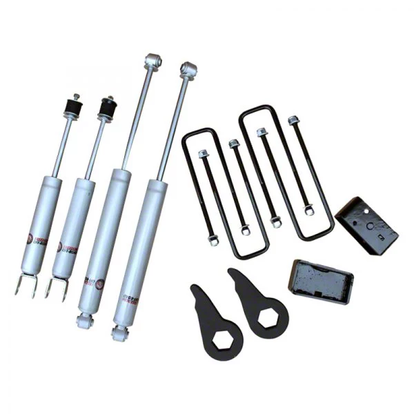Superior Stress Mitigation. The Freedom Offroad 1 to 3-Inch Front Leveling Kit with Shocks is a dependable suspension system that can efficiently raise your Silverado and enhance its stance. Because they effectively provide superior stress mitigation and weight support, these potent shocks and rear blocks are suitable for difficult road driving.