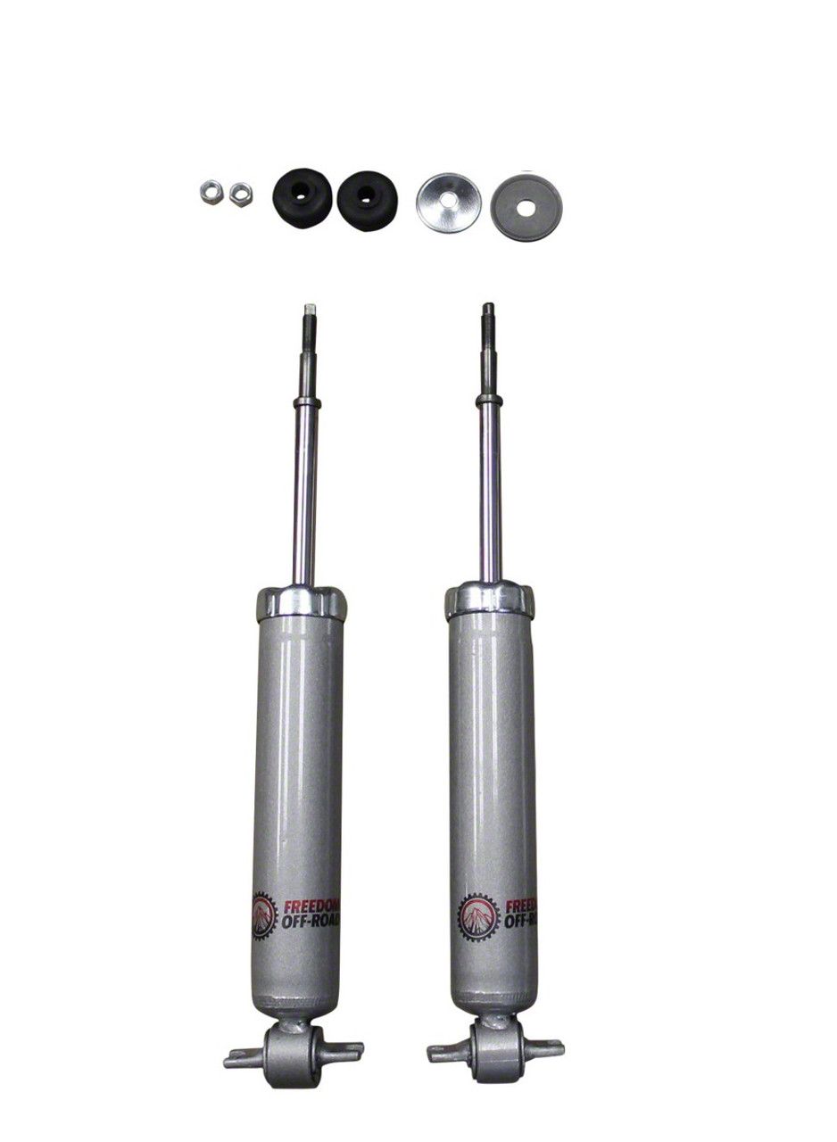 Dominate Any Terrain. The Freedom Offroad Extended Nitro Front Shocks' enhanced damping and valving provide precise control and responsiveness, allowing you to confidently navigate corners and maintain stability in challenging conditions. Whether you're cruising down the highway or conquering off-road trails, these shocks deliver the performance and control you need.