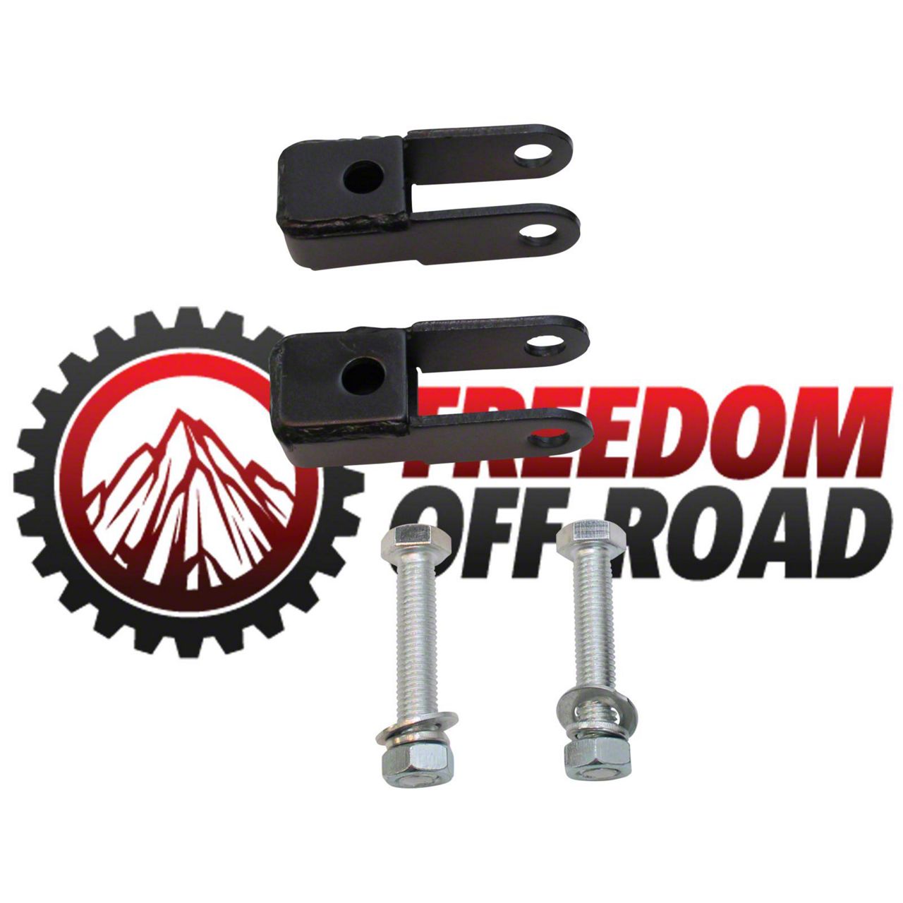 Maintain Optimal Shock Performance. The Freedom Offroad Front Shock Extenders are specifically designed for vehicles with a 2.50-inch lift. They keep the shocks within factory specifications, eliminating the need for extended shocks, and ensuring seamless performance for lifted applications.