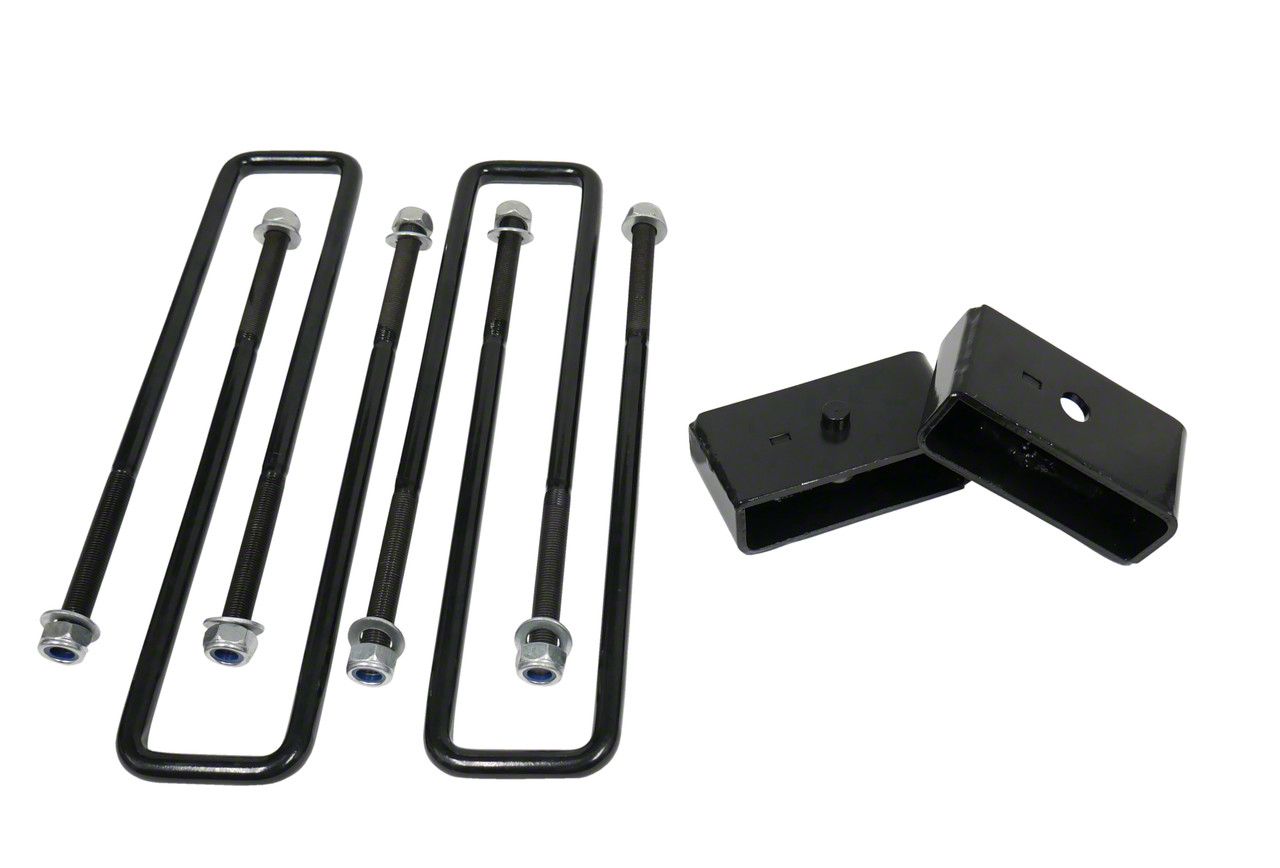 Other Features. What's more? The tapered design of these lift blocks reduces the driveshaft angle, which helps distribute weight evenly when towing. Grade 8 hardware is included for enhanced reliability.