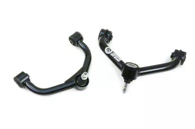Improved Replacements. Elevate the suspension of your Silverado 2500 HD with the Freedom Offroad Upper Control Arms. These arms, designed for the front and vehicles with 1 to 3 inches of lift, are engineered for superior durability and performance. Crafted from 1.5-inch metal tubing and finished in matte black, they not only enhance the vehicle's aesthetic but also its handling capabilities. Including provisions for brake/ABS lines, these control arms integrate seamlessly with your vehicle's existing systems. Pre-Greased and Replaceable Ball Joints. These upper control arms feature heavy-duty stock style ball joints that are pre-greased and replaceable, ensuring long-lasting performance and ease of maintenance. The hardened rubber bushings provide a balance of flexibility and durability, requiring minimal upkeep. This direct replacement set, coming in pairs, offers an upgrade in both function and reliability, making it an essential addition for those looking to improve their Silverado's suspension.