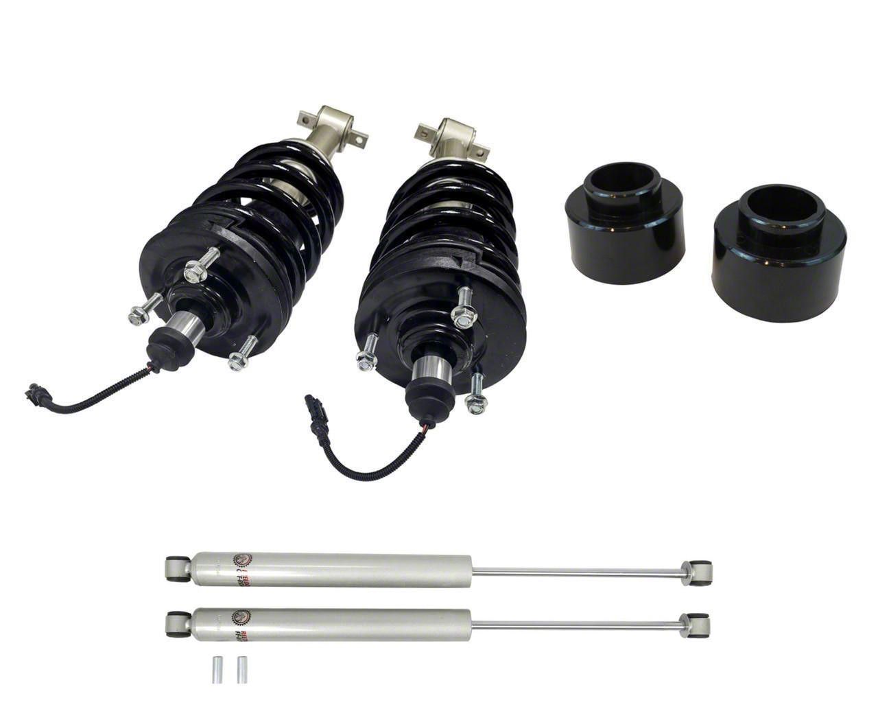Complete Suspension Solution. The Freedom Offroad 2.5-Inch MagneRide Delete Loaded Front Struts with 2-Inch Rear Spring Spacers and Rear Shocks provide a complete upgrade for vehicles equipped with factory MagneRide systems. This kit replaces the electronic struts with passive lift struts to eliminate suspension warning lights while maintaining consistent ride quality and improved performance. It is designed to enhance ground clearance, improve vehicle stance, and increase stability.
