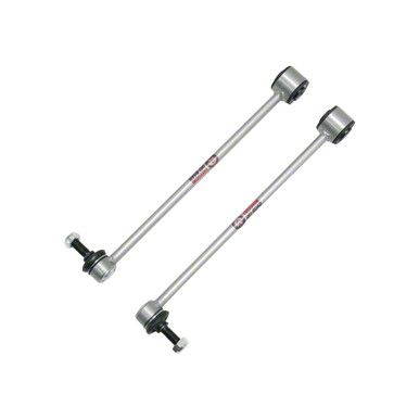 Construction and Appearance. Built with heavy-duty carbon steel ball studs that are heat-treated and cold-forged, these end links are engineered for long-lasting strength. The zinc-nickel alloy coating provides over 800 hours of salt spray resistance, while neoprene rubber bushings reduce deflection and wear. This set of four includes both front and rear links, offering a complete solution for maintaining proper sway bar function on lifted vehicles.