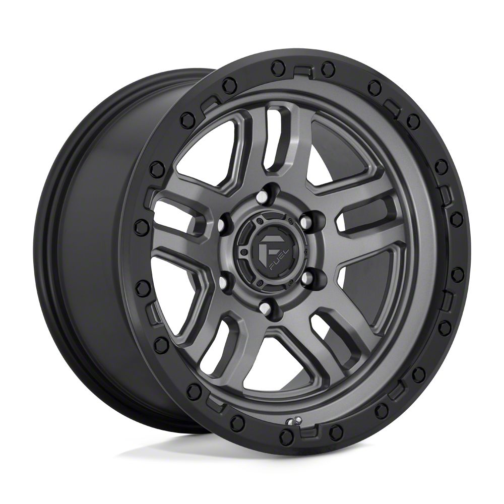 Fuel Wheels Ammo Matte Gunmetal with Black Bead Ring 5-Lug Wheel; 20x9; 1mm Offset is a perfect blend of style and rugged design, making it a standout choice for those looking to enhance their vehicle's aesthetic appeal. Its bold, dark metallic finish pairs seamlessly with a wide variety of vehicle styles, offering both modernity and durability. Built by Fuel Wheels, this wheel is designed to elevate your vehicle's appearance with its robust presence.