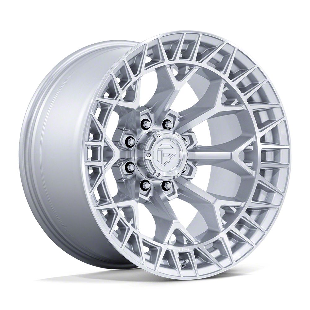 Fuel Wheels Charger Gloss Silver with Machined Face 8-Lug Wheel; 20x9; 1mm Offset is a perfect blend of style and rugged design, making it a standout choice for those looking to enhance their vehicle's aesthetic appeal. Its bold, dark metallic finish pairs seamlessly with a wide variety of vehicle styles, offering both modernity and durability. Built by Fuel Wheels, this wheel is designed to elevate your vehicle's appearance with its robust presence.