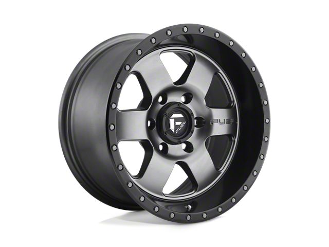 Fuel Wheels Podium Matte Gunmetal with Black Bead Ring 8-Lug Wheel; 20x9; 1mm Offset is a perfect blend of style and rugged design, making it a standout choice for those looking to enhance their vehicle's aesthetic appeal. Its bold, dark metallic finish pairs seamlessly with a wide variety of vehicle styles, offering both modernity and durability. Built by Fuel Wheels, this wheel is designed to elevate your vehicle's appearance with its robust presence.