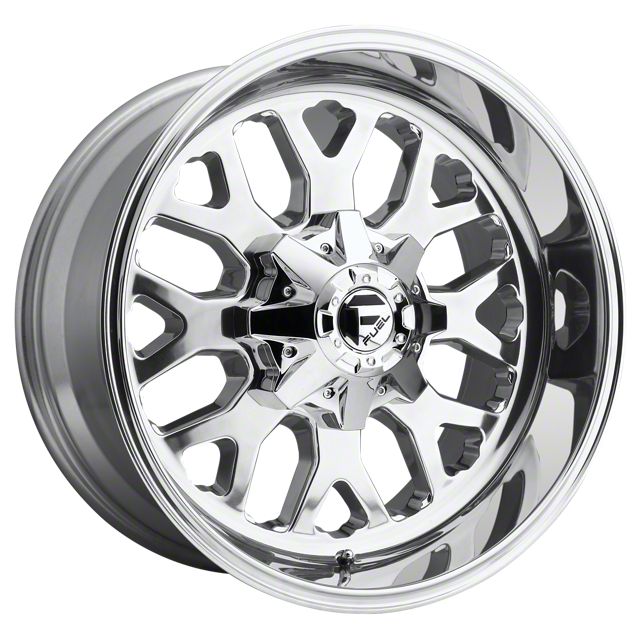 Fuel Wheels Titan High Luster Polished 8-Lug Wheel; 20x10; -18mm Offset is a perfect blend of style and rugged design, making it a standout choice for those looking to enhance their vehicle's aesthetic appeal. Its bold, dark metallic finish pairs seamlessly with a wide variety of vehicle styles, offering both modernity and durability. Built by Fuel Wheels, this wheel is designed to elevate your vehicle's appearance with its robust presence.