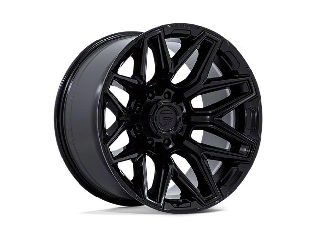 Fuel Wheels Flux Gloss Black 8-Lug Wheel; 20x10; -18mm Offset is a perfect blend of style and rugged design, making it a standout choice for those looking to enhance their vehicle's aesthetic appeal. Its bold, dark metallic finish pairs seamlessly with a wide variety of vehicle styles, offering both modernity and durability. Built by Fuel Wheels, this wheel is designed to elevate your vehicle's appearance with its robust presence.
