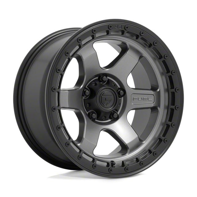 Fuel Wheels Block Matte Gunmetal with Black Ring 6-Lug Wheel; 17x9; -12mm Offset is a perfect blend of style and rugged design, making it a standout choice for those looking to enhance their vehicle's aesthetic appeal. Its bold, dark metallic finish pairs seamlessly with a wide variety of vehicle styles, offering both modernity and durability. Built by Fuel Wheels, this wheel is designed to elevate your vehicle's appearance with its robust presence.