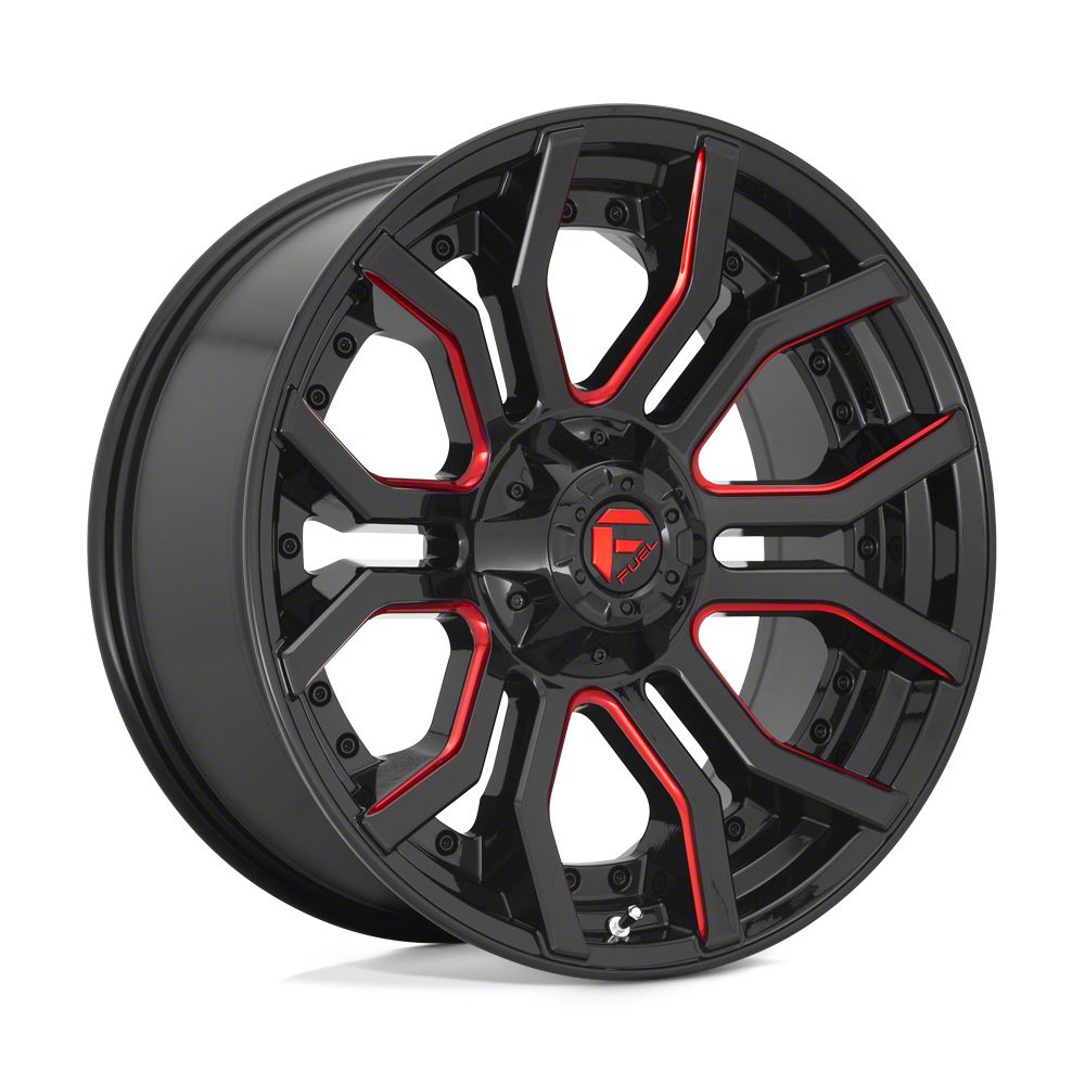 Fuel Wheels Rage Gloss Black with Red Tinted Clear 5-Lug Wheel; 20x9; 1mm Offset is a perfect blend of style and rugged design, making it a standout choice for those looking to enhance their vehicle's aesthetic appeal. Its bold, dark metallic finish pairs seamlessly with a wide variety of vehicle styles, offering both modernity and durability. Built by Fuel Wheels, this wheel is designed to elevate your vehicle's appearance with its robust presence.