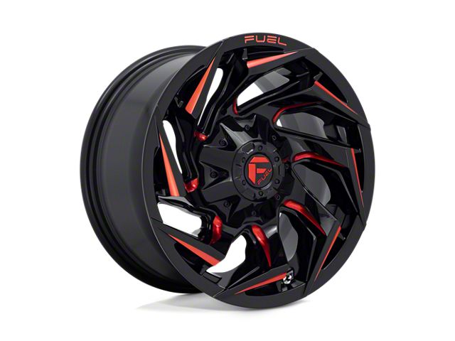 Fuel Wheels Reaction Gloss Black Milled with Red Tint 5-Lug Wheel; 20x10; -18mm Offset is a perfect blend of style and rugged design, making it a standout choice for those looking to enhance their vehicle's aesthetic appeal. Its bold, dark metallic finish pairs seamlessly with a wide variety of vehicle styles, offering both modernity and durability. Built by Fuel Wheels, this wheel is designed to elevate your vehicle's appearance with its robust presence.