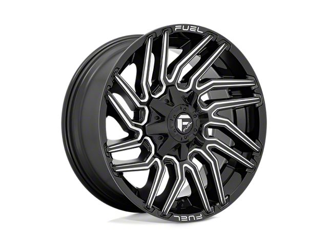 Fuel Wheels Typhoon Gloss Black Milled 8-Lug Wheel; 20x9; 1mm Offset is a perfect blend of style and rugged design, making it a standout choice for those looking to enhance their vehicle's aesthetic appeal. Its bold, dark metallic finish pairs seamlessly with a wide variety of vehicle styles, offering both modernity and durability. Built by Fuel Wheels, this wheel is designed to elevate your vehicle's appearance with its robust presence.