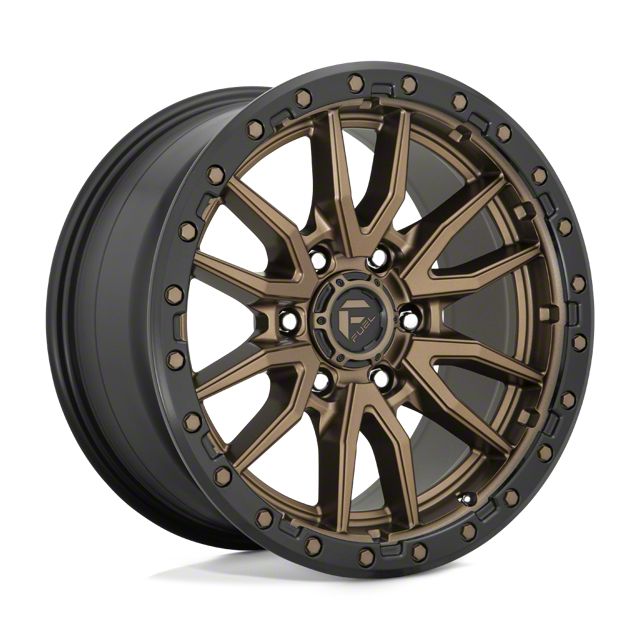 Fuel Wheels Rebel Matte Bronze with Black Bead Ring 6-Lug Wheel; 17x9; -12mm Offset is a perfect blend of style and rugged design, making it a standout choice for those looking to enhance their vehicle's aesthetic appeal. Its bold, dark metallic finish pairs seamlessly with a wide variety of vehicle styles, offering both modernity and durability. Built by Fuel Wheels, this wheel is designed to elevate your vehicle's appearance with its robust presence.