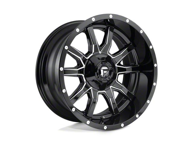 The 20x9 Fuel Wheels Vandal Gloss Black Milled 6-Lug Wheel is completed in a high-quality gloss black finish with steel milled accents that will be the envy of everyone. For added protection and good looks, there is a durable clear coat that withstands the rigors of everyday driving,