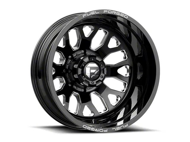 Fuel Wheels FF19D Gloss Black Milled 8-Lug Wheel; 22x12; -50mm Offset is a perfect blend of style and rugged design, making it a standout choice for those looking to enhance their vehicle's aesthetic appeal. Its bold, dark metallic finish pairs seamlessly with a wide variety of vehicle styles, offering both modernity and durability. Built by Fuel Wheels, this wheel is designed to elevate your vehicle's appearance with its robust presence.