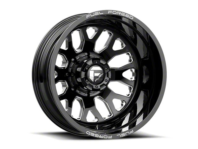 Fuel Wheels FF19D Gloss Black Milled 8-Lug Wheel; 24x12; -50mm Offset is a perfect blend of style and rugged design, making it a standout choice for those looking to enhance their vehicle's aesthetic appeal. Its bold, dark metallic finish pairs seamlessly with a wide variety of vehicle styles, offering both modernity and durability. Built by Fuel Wheels, this wheel is designed to elevate your vehicle's appearance with its robust presence.