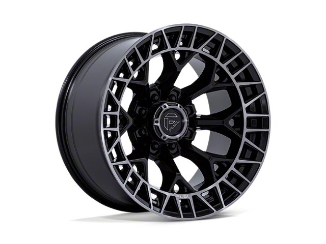 Fuel Wheels Charger Gloss Black Brushed Face with Dark Tint 8-Lug Wheel; 20x10; -18mm Offset is a perfect blend of style and rugged design, making it a standout choice for those looking to enhance their vehicle's aesthetic appeal. Its bold, dark metallic finish pairs seamlessly with a wide variety of vehicle styles, offering both modernity and durability. Built by Fuel Wheels, this wheel is designed to elevate your vehicle's appearance with its robust presence.