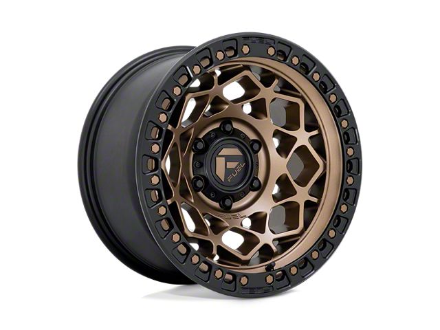 Fuel Wheels Unit Bronze with Matte Black Ring 6-Lug Wheel; 17x9; 1mm OffsetThis wheel features a sleek and durable design, ideal for enhancing the aesthetic and style of your vehicle. Its quality craftsmanship ensures a perfect combination of form and function, suitable for any driver seeking a balance of style and dependability. Its high-quality finish ensures resistance against corrosion and wear over time. Designed for optimal visual appeal, this wheel complements a variety of vehicle styles.