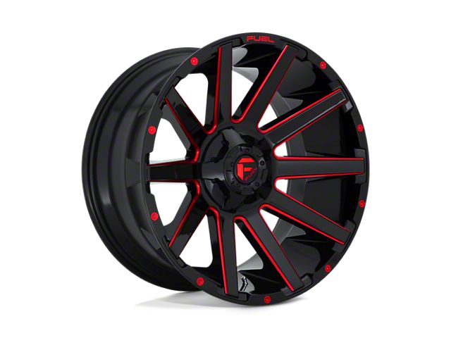 Fuel Wheels Contra Gloss Black with Red Tinted Clear 5-Lug Wheel; 20x10; -18mm Offset is a perfect blend of style and rugged design, making it a standout choice for those looking to enhance their vehicle's aesthetic appeal. Its bold, dark metallic finish pairs seamlessly with a wide variety of vehicle styles, offering both modernity and durability. Built by Fuel Wheels, this wheel is designed to elevate your vehicle's appearance with its robust presence.